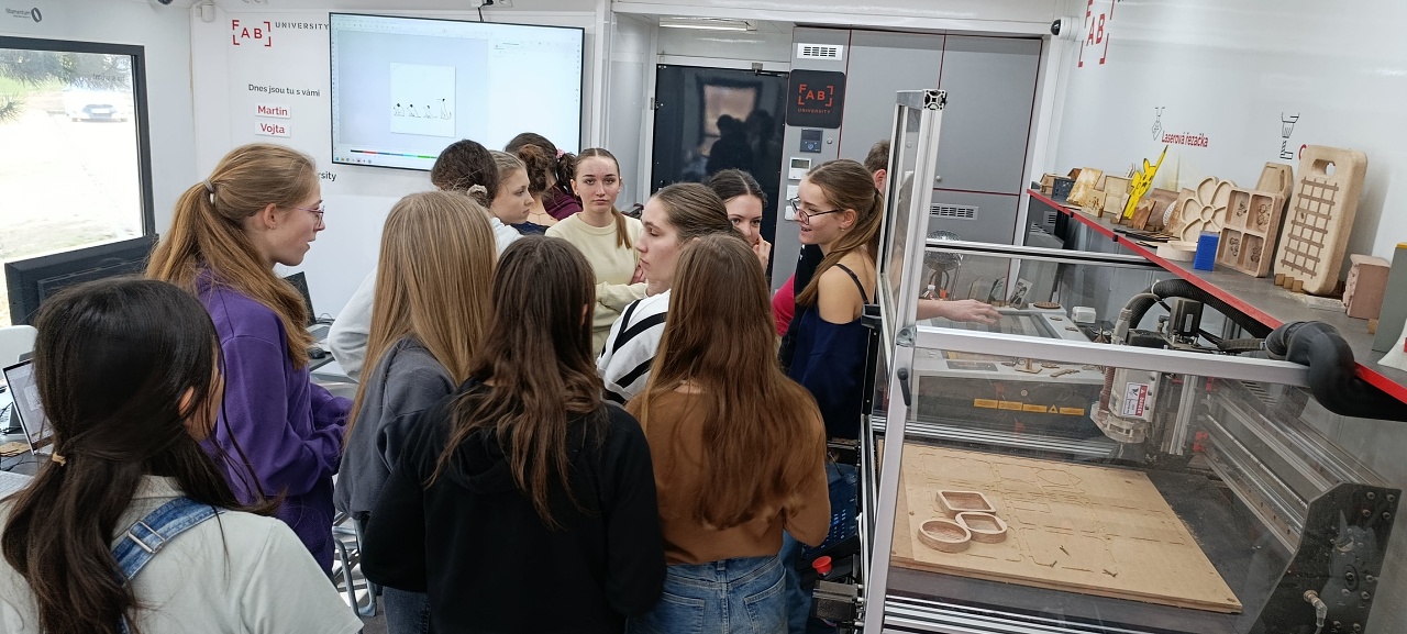 V týdnu po jarních prázdninách (23.2.-27.2.) stál poblíž budovy GML FabLab kamion. Vytížili jsme jej na maximum, denně od rána do odpoledne.