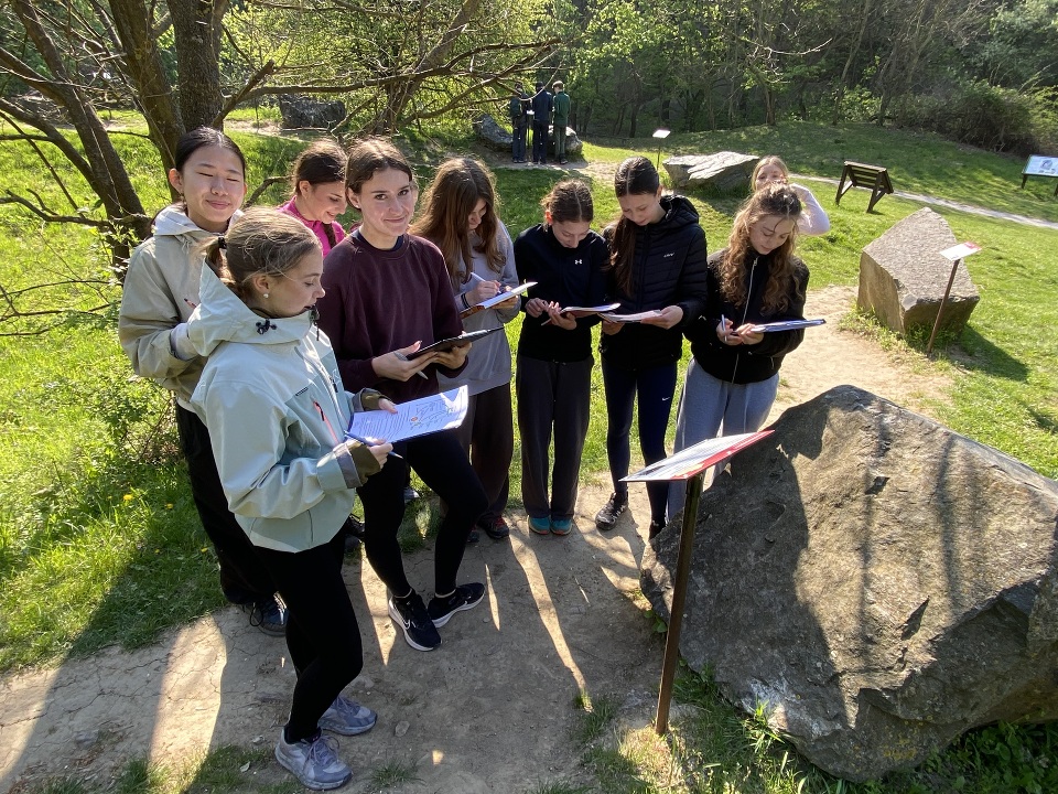 Dne 17. 4. 2026 se 2.B a 2.BF vydaly směrem na geologicko-botanickou exkurzi. Trasa výletu vedla z Mikulova, kde žáci a žákyně nahlédli do jeskyně Na Turoldu a probádali přilehlý geopark. Následně je čekala výprava přes hlavní hřeben Pavlovských vrchů směrem do Dolních Věstonic. Kromě krásně kvetoucích květin jarního aspektu je letos překvapila přítomnost slunících se ještěrek zelených. Jarní Pálava  tedy byla geoparkem, zoologickou i botanickou zahradou a především skvělým výletem! Fotografie ještěrky zelené je dílem Anastasiie Barabash (2.B).