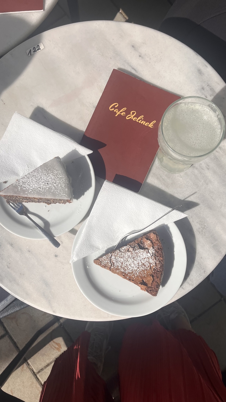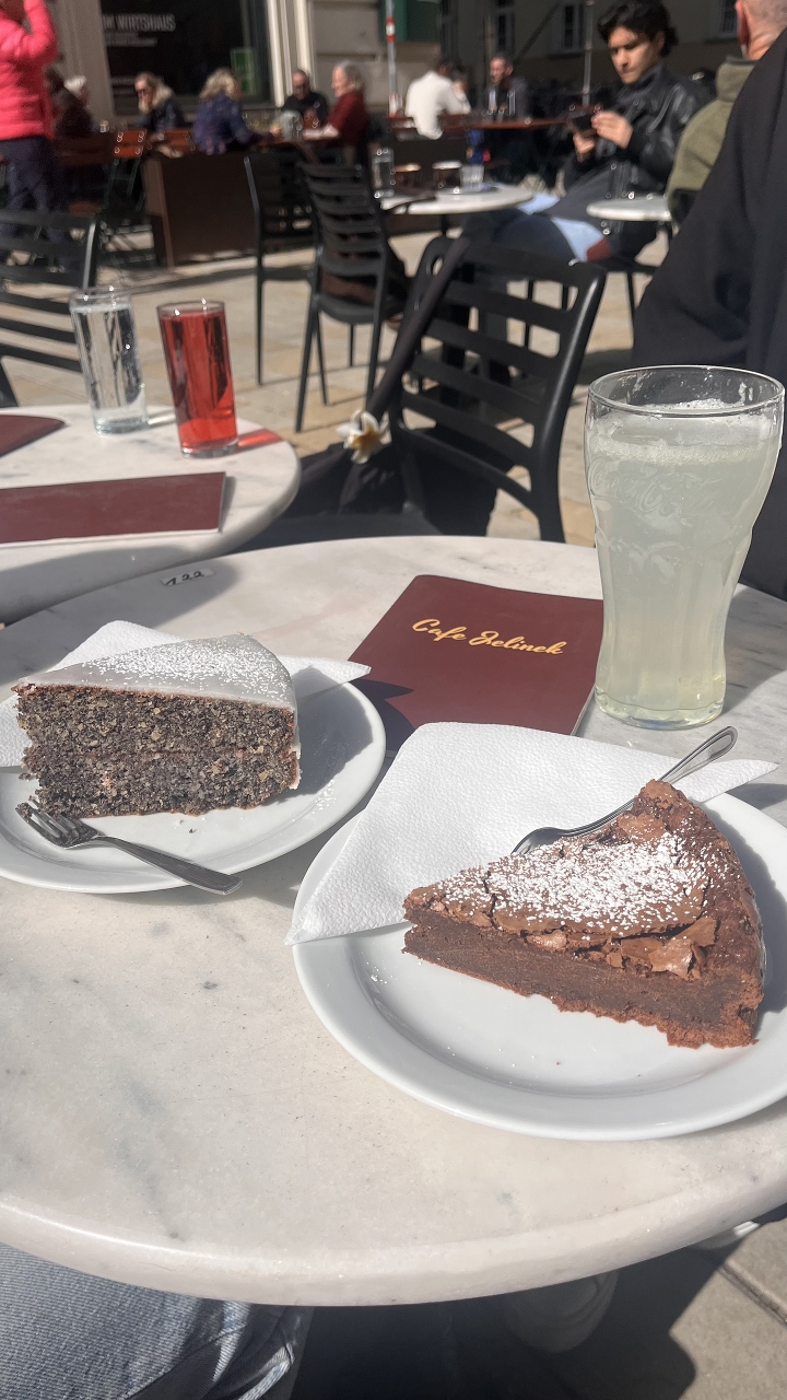 Nesměla chybět ani objednávka v tradiční vídeňské kavárně s dlouhletou tradicí – Cafe Jelinek. A došlo i na "Trinkgeld"!