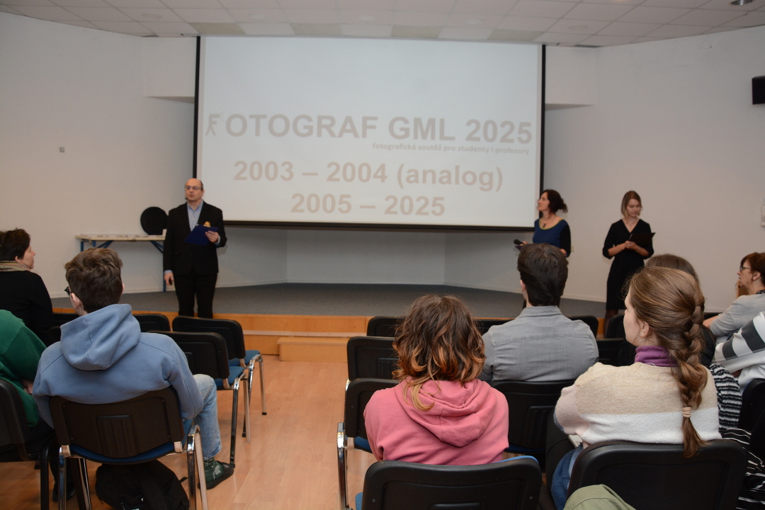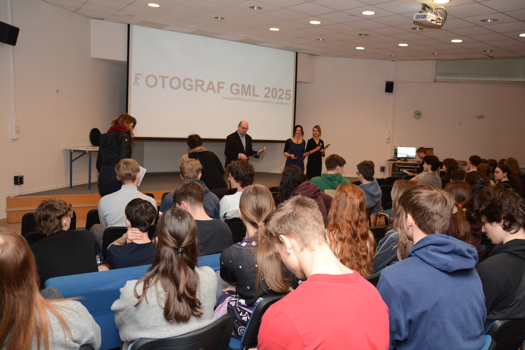 V úterý 24. února se konalo v aule GML slavnostní vyhlášení výsledků soutěže Fotograf GML 2025.