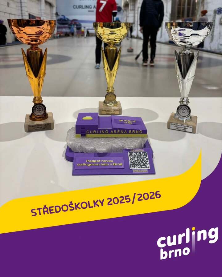Ve středu 22. dubna 2026 se v Curling aréně Brno konaly středoškolské hry v curlingu (Instagram).